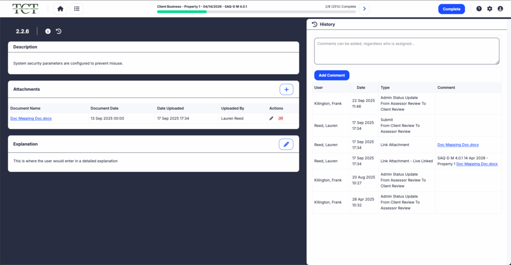 TCT Portal provides a tremendous amount of power to compliance teams, whether you’re subject to  compliance, an Assessment Firm, or act as a compliance Consultant.